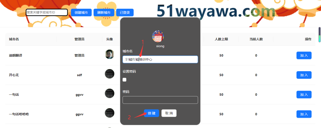 第十步:1.输入城市名(建议输入您的商号),2. 点击创建按钮